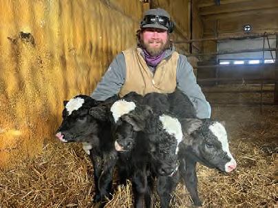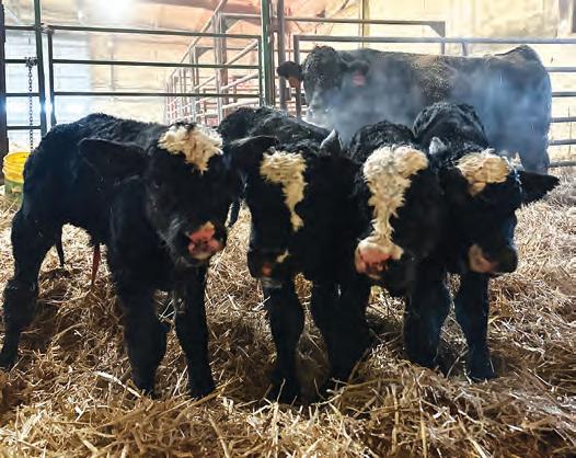 Above: Owen Stavick with the “quads” shortly after birth. Opposite: Mike Stavick was surprised, and proud, when all four of the quadruplet bull calves started developing into top herd bull prospects.