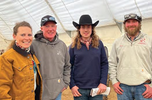Above: Holly, Bill, and Caleb Johnson, with Owen Stavick. Below: Stavick Simmentals maintains a high standard for the bulls they offer for sale. All four bulls made the cut phenotypically and genetically.
