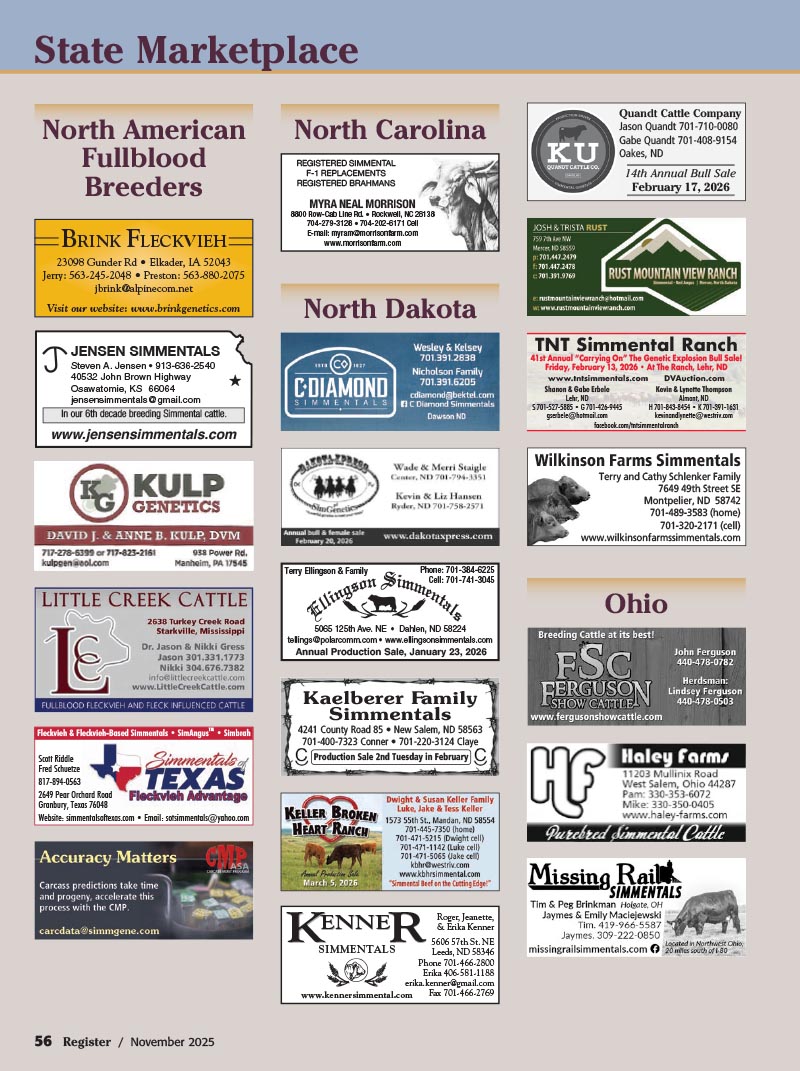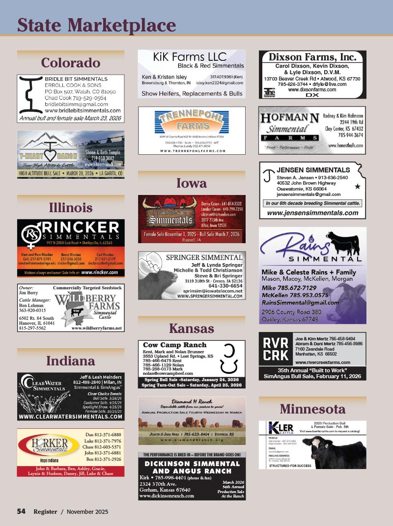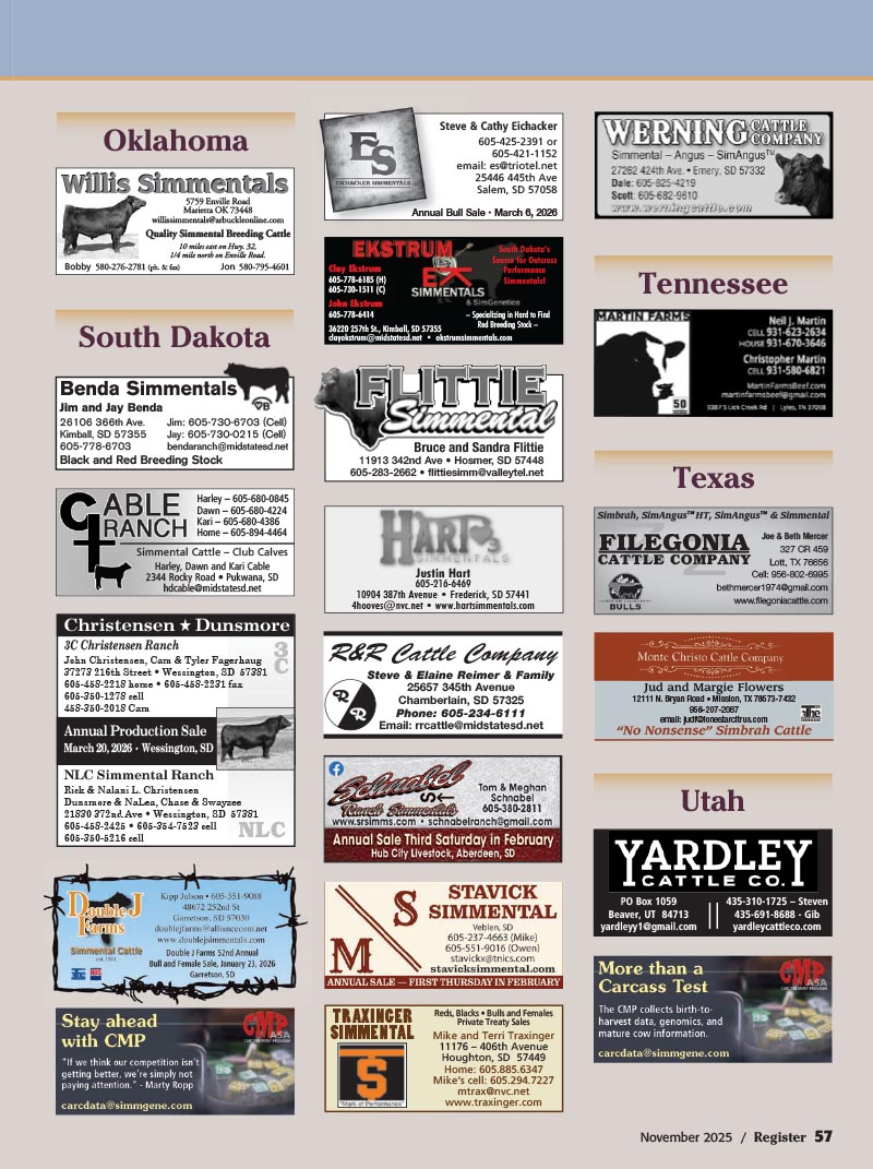 6 Eichacker Simmentals’ Annual Production Sale — Salem, SD (pg. 57)